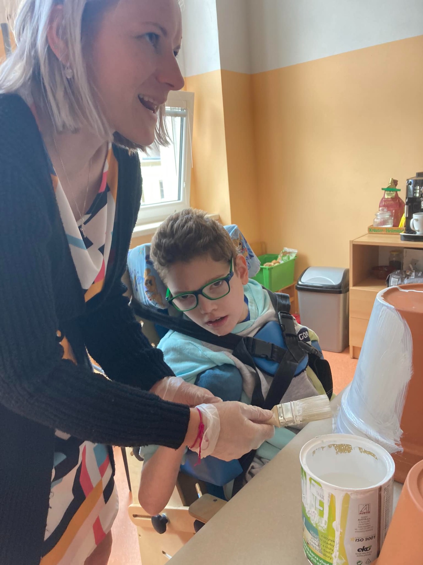 Aby se mohl zapojit do vzdělávacích a terapeutických aktivit, potřebuje speciální elektrické polohovací zařízení Baffin TRIO. To umožňuje bezpečně měnit polohy – v sedě, v leže i ve stoje – a výrazně tak podporuje jeho zdraví, dýchání, trávení i prevenci bolestí a deformací páteře.